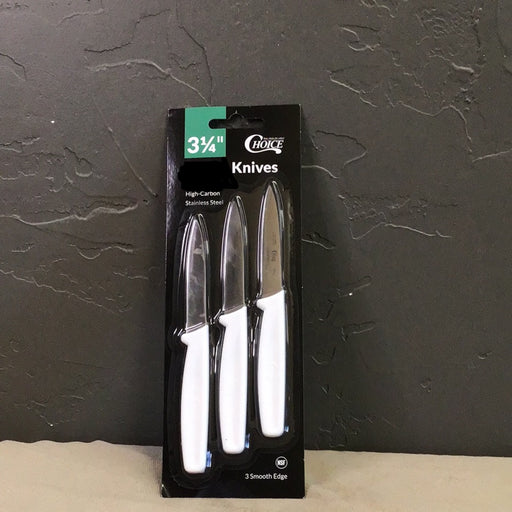 $7.99| /Choice 3 1/4" Paring Knife Set with 1 Serrated and 2 Smooth Edge Knives with White Handles
